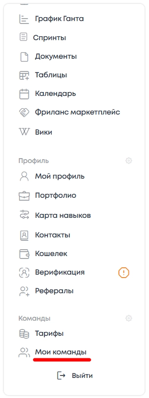 Через горизонтальное меню: вкладка "Сервисы" → раздел "Мои команды"