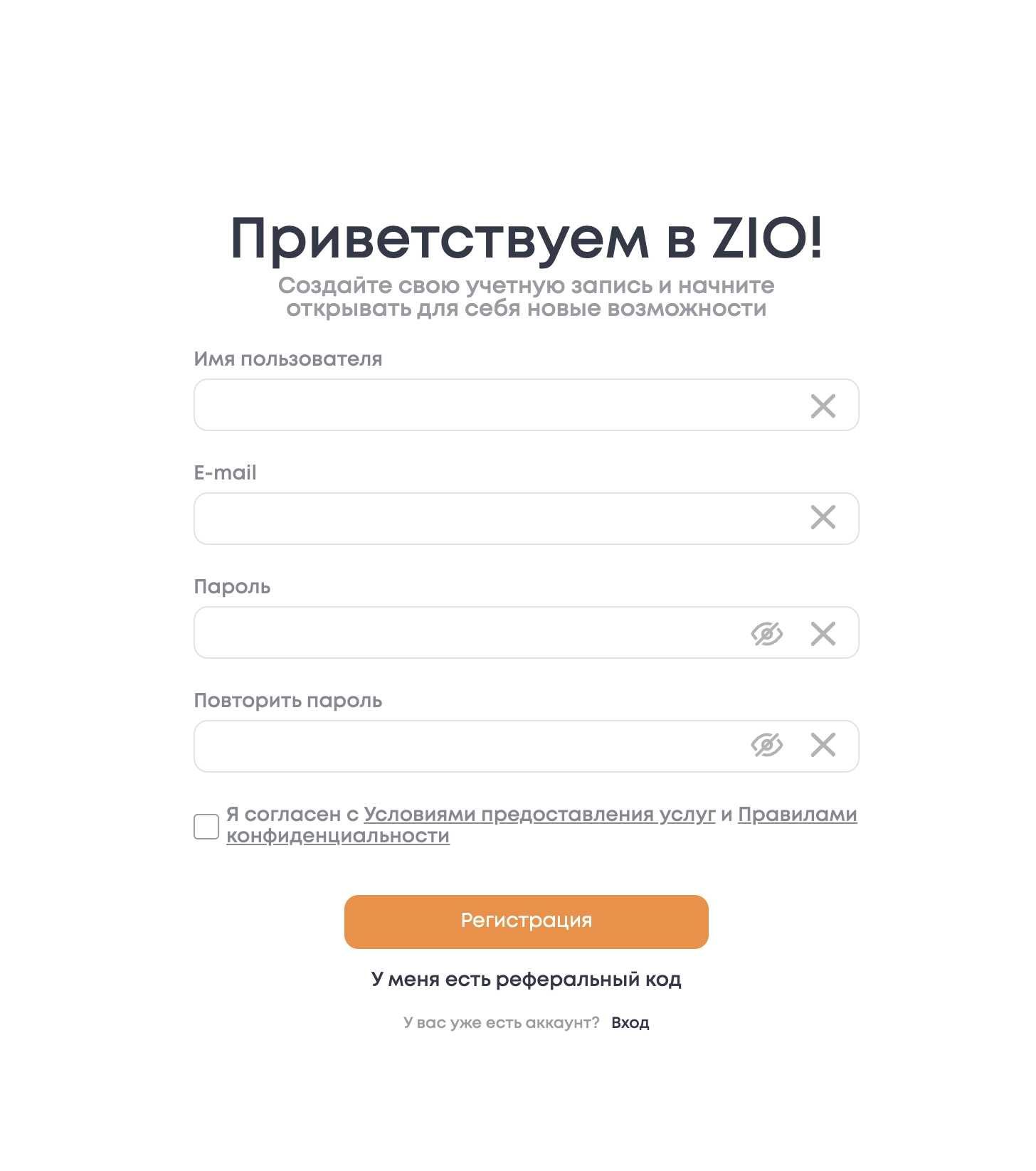 Вход в аккаунт