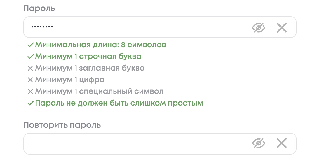 Рекомендуется использовать пароль длиной от 8 символов и включать: