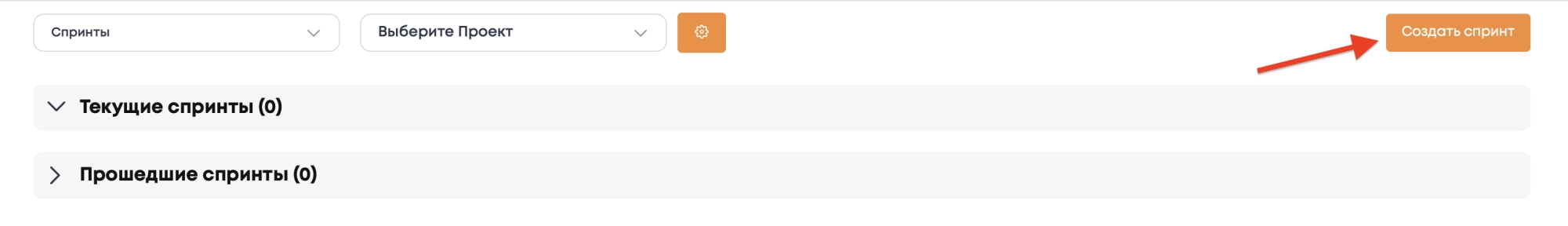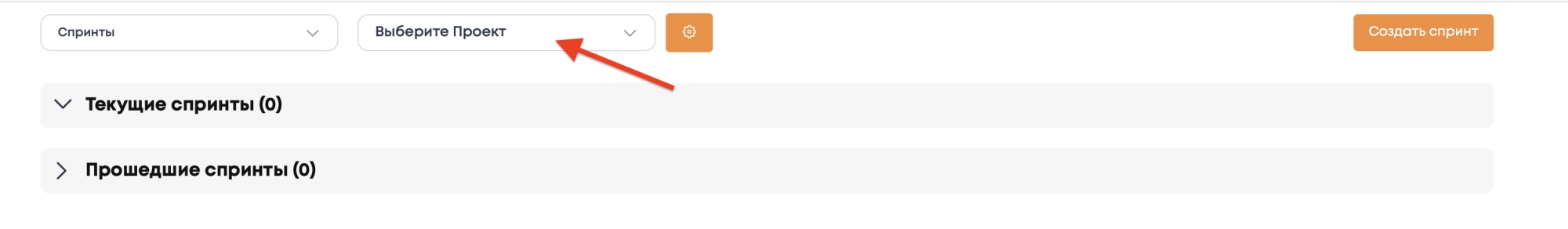 1. На странице «Спринты» выбрать проект, для которого создается спринт.