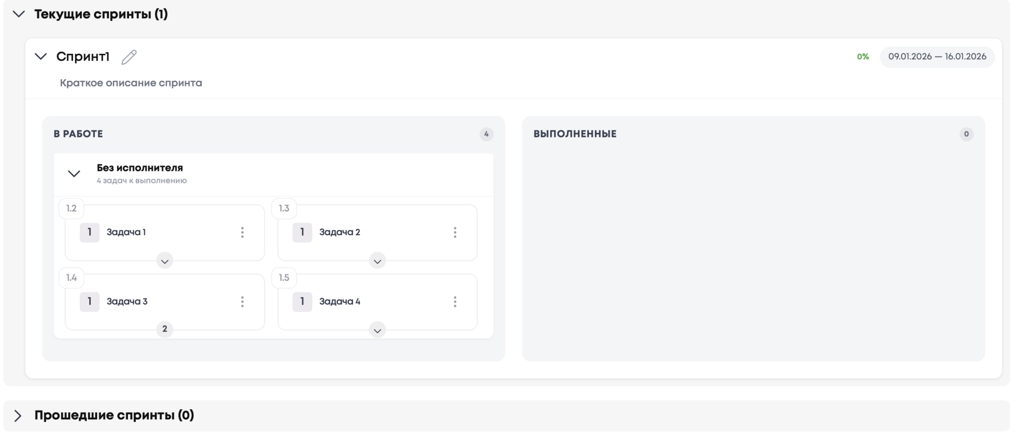 Сервис «Спринты» помогает команде сосредоточиться на задачах, которые нужно выполнить за ограниченный период времени (спринт). Он позволяет планировать работу, отслеживать прогресс и учитывать автоматически высчитанные результаты.