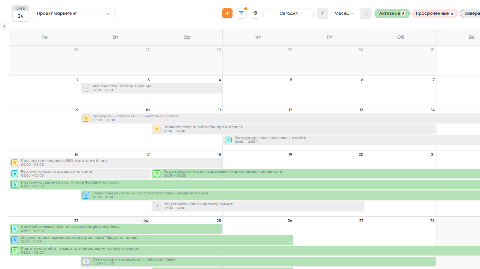 Календарь проектов и задач
